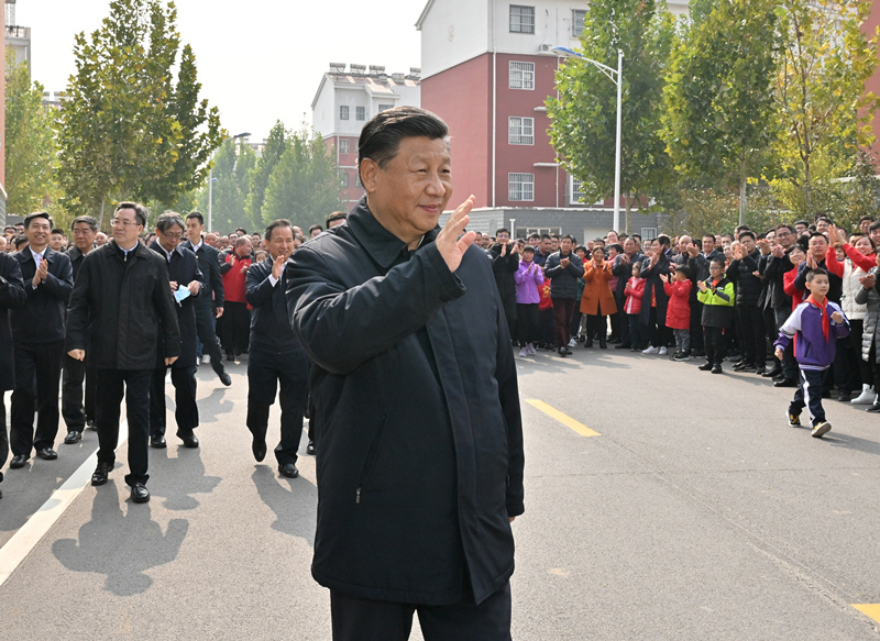 2021年10月22日,習(xí)近平總書(shū)記在山東省濟(jì)南市主持召開(kāi)深入推動(dòng)黃河流域生態(tài)保護(hù)和高質(zhì)量發(fā)展座談會(huì)并發(fā)表重要講話。這是座談會(huì)前,總書(shū)記在東營(yíng)市墾利區(qū)董集鎮(zhèn)楊廟社區(qū)考察時(shí),向社區(qū)干部群眾揮手致意。