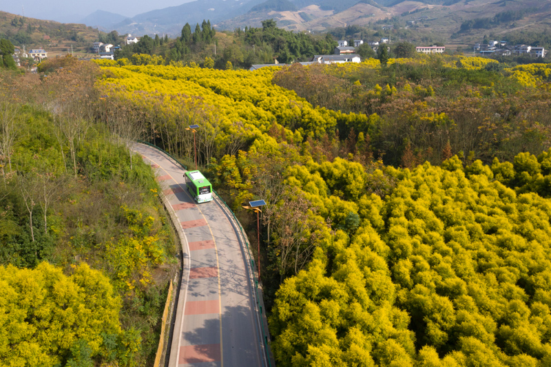 2021年11月26日,一輛公交車行駛在重慶市北碚區(qū)柳蔭鎮(zhèn)的農(nóng)村公路上。