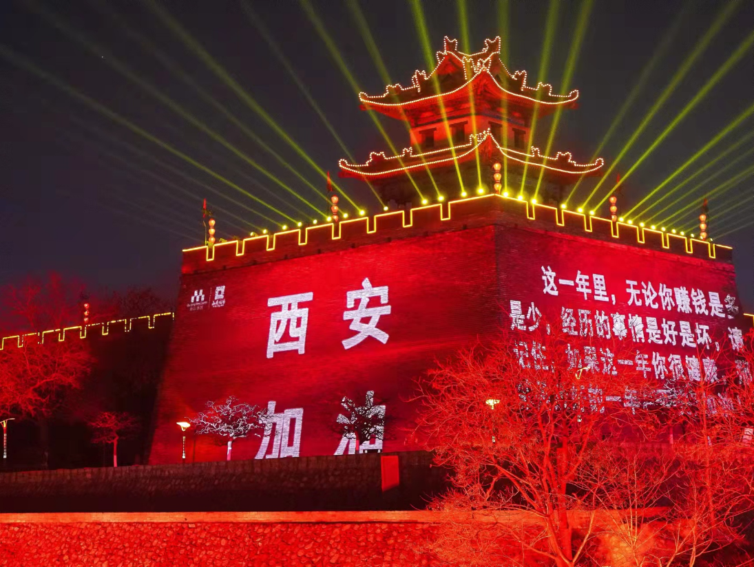 “西”望你我,“安”然無恙。12月22日晚,西安城墻景區(qū)舉行“西安加油”光影展示,用璀璨的燈光和真摯的詞語鼓舞戰(zhàn)“疫”士氣,表達古城人民抗“疫”必勝的決心。