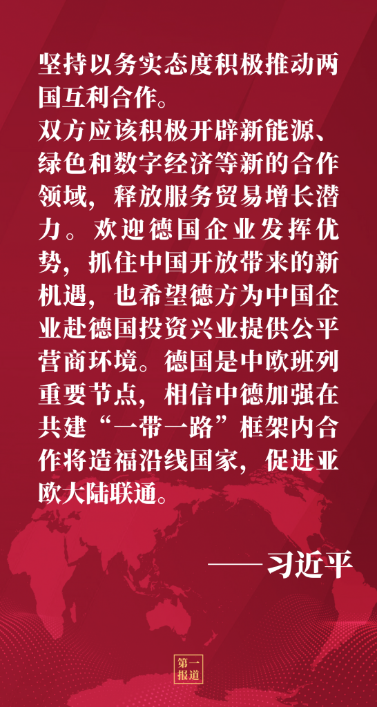 明年是中德建交50周年。展望未來(lái)50年,如何推動(dòng)中德、中歐關(guān)系邁上新臺(tái)階,習(xí)近平主席強(qiáng)調(diào)這些關(guān)鍵——