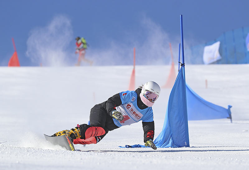 2021年2月17日,運動員在北京冬奧會張家口賽區(qū)崇禮云頂滑雪公園訓(xùn)練,備戰(zhàn)2022年北京冬奧會。