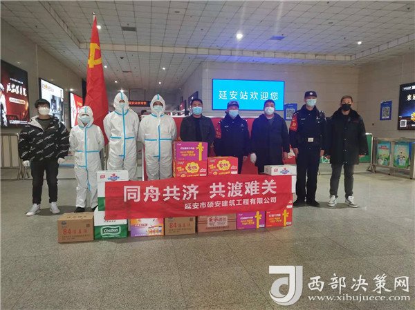 下午16時,延安市碩安建筑工程有限公司一行三人攜帶方便面、火腿腸、面包、飲料等慰問品來到延安火車站,向正在執(zhí)勤的民警、輔警表示感謝,同時提醒民警、輔警及防疫人員做好自身防護。企業(yè)負責人表示:延安鐵警舍小家、為大家,守護群眾的平安健康,這些防疫物資代表著我們對民、輔警及所有防疫工作人員的關(guān)心和敬意!