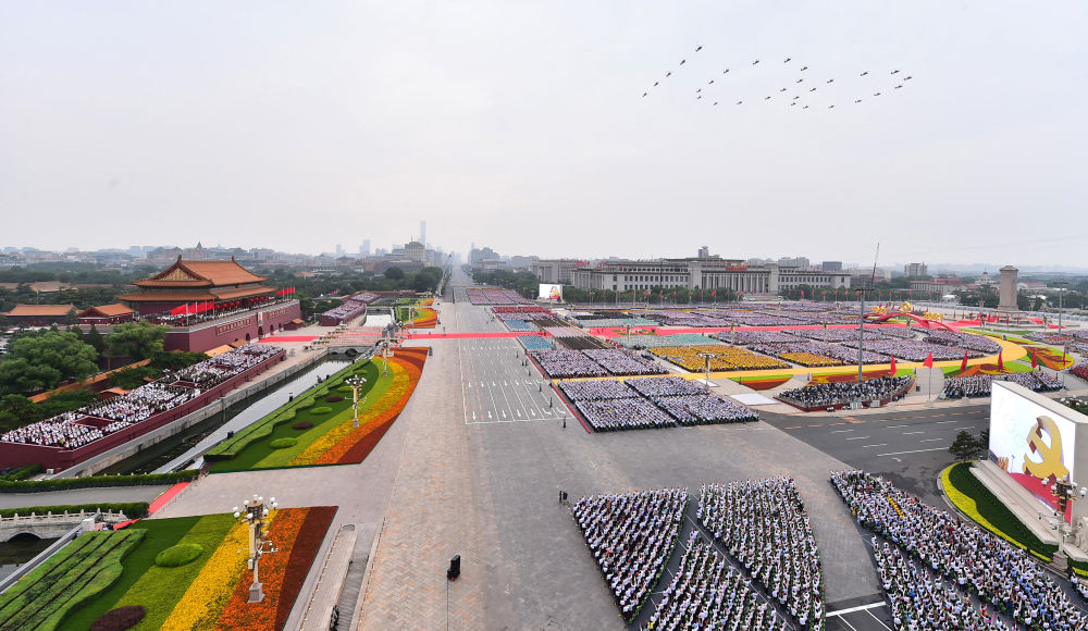 ↑2021年7月1日,慶祝中國共產(chǎn)黨成立100周年大會在北京天安門廣場隆重舉行。中共中央總書記、國家主席、中央軍委主席習(xí)近平發(fā)表重要講話。