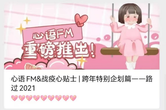 疫情防控期間,考慮到學生學習生活場所受限,學生情緒容易受到環(huán)境影響。心理健康教育中心通過新媒體開展“戰(zhàn)疫心貼士”、心語FM專欄,每天為該校學生推送疫情心理調節(jié)小妙招及各類心理援助資源。相繼發(fā)布的15篇推文有效地幫助學生們掌握了有關疫情的心理健康知識,學會了自我健心減壓,引導他們理性對待疫情,不恐慌、不信謠、不傳謠,保持良好心理狀態(tài)。