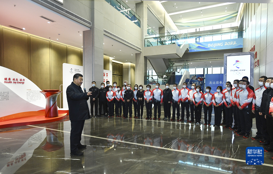 1月4日,中共中央總書記、國家主席、中央軍委主席習(xí)近平在北京考察2022年冬奧會、冬殘奧會籌辦備賽工作。這是4日下午,習(xí)近平在二七廠冰雪項目訓(xùn)練基地速滑館,向參訓(xùn)運動員、教練員表示慰問。新華社記者 謝環(huán)馳 攝