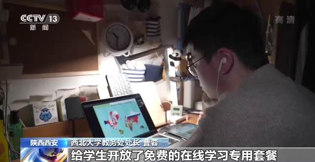 西北大學教務處處長 曹蓉:我們擔心網(wǎng)絡卡頓,西北大學的信息化處充分挖掘網(wǎng)絡資源,擴容了帶寬,給學生開放了免費的在線學習專用套餐。