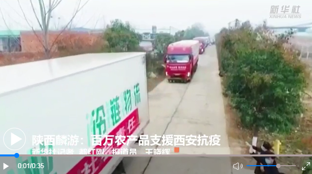 1月8日,陜西省麟游縣8輛裝滿30000斤生態(tài)豬肉、4000份優(yōu)質(zhì)農(nóng)特產(chǎn)品和16000斤高山蘋果的大卡車,奔赴西安市助力疫情防控。這些價值100余萬元的捐助物質(zhì)將送往西安市蓮湖區(qū)和10個集中隔離點,彰顯了“有難一家親,攜手渡難關(guān)”的濃濃深情。