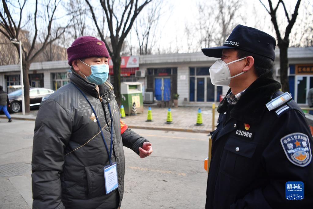 1月10日,西安市公安局新城分局民警在負(fù)責(zé)執(zhí)勤的社區(qū)向居民講解就醫(yī)流程。新華社記者 張博文 攝