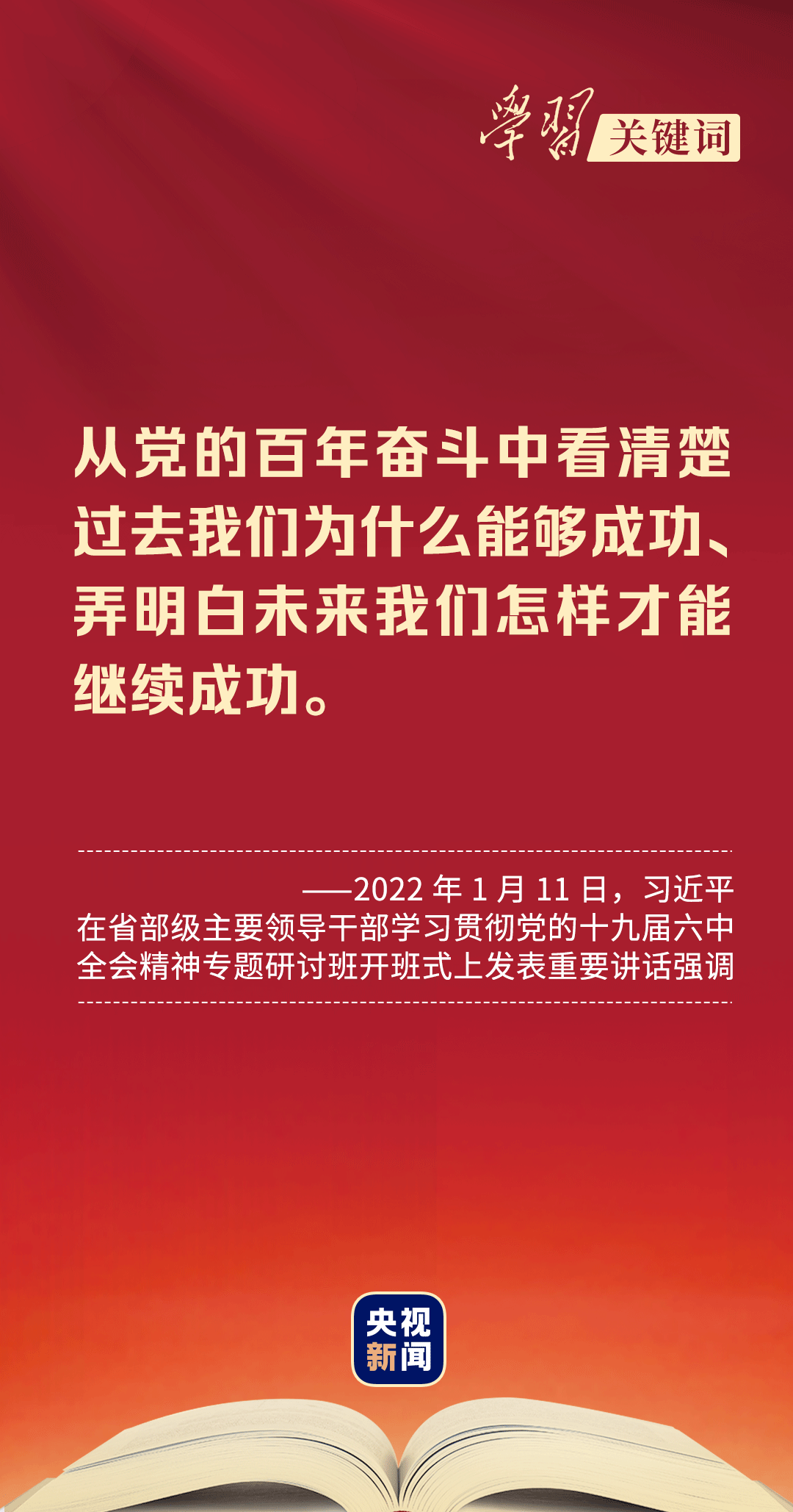 “從黨的百年奮斗中看清楚過(guò)去我們?yōu)槭裁茨軌虺晒Α⑴靼孜磥?lái)我們?cè)鯓硬拍芾^續(xù)成功,從而更加堅(jiān)定、更加自覺(jué)地踐行初心使命,在新時(shí)代更好堅(jiān)持和發(fā)展中國(guó)特色社會(huì)主義。”