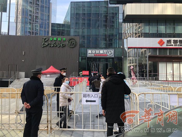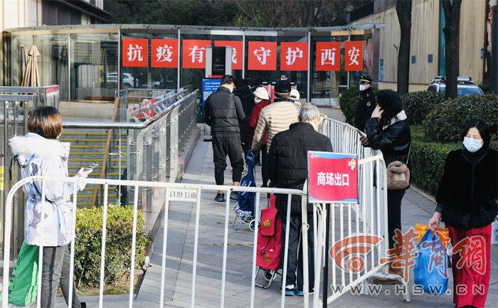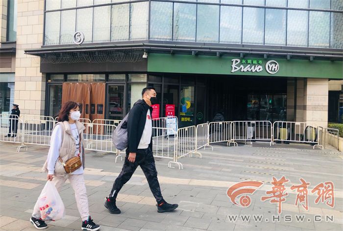 華商報記者看到,大唐不夜城處于封閉狀態(tài),步行街空無一人。大唐不夜城南端銀泰城盒馬鮮生門口,限流進入,居民排隊有序。兩位男士拎著兩大包東西出來了,“在小區(qū)物業(yè)辦了通行證,買了不少東西。還好,大約排隊20分鐘就進去了。”