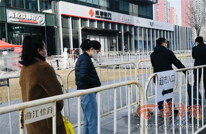 1月15日下午,華商報記者在創(chuàng)意谷永輝超市門口了解到,已有居民在自己所在的小區(qū)辦理了通行證,來超市采購。大家在超市門口按照疫情防控規(guī)定,有序排隊進入。
