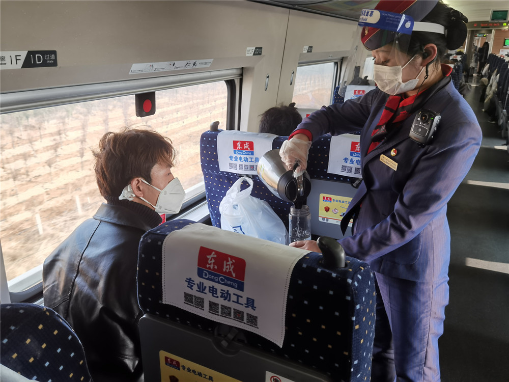 面對(duì)今年春運(yùn)疫情防控形勢(shì)和大客流安全運(yùn)輸壓力,全體高鐵乘務(wù)人員將嚴(yán)把安全關(guān),加強(qiáng)設(shè)施設(shè)備檢修維護(hù)。主動(dòng)做好疫情防控,加強(qiáng)車(chē)廂內(nèi)消毒和衛(wèi)生清掃、為旅客提供安全衛(wèi)生的餐飲產(chǎn)品,加密列車(chē)公共部位消毒頻次、科學(xué)做好發(fā)熱旅客處置、加強(qiáng)旅客防護(hù)用品佩戴提醒等,用心為旅客服務(wù),讓旅客平安健康出行。