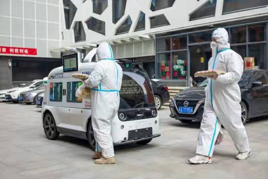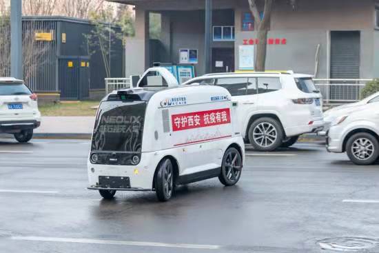 這輛憨態(tài)可掬的白色小車,便是航天基地轄區(qū)企業(yè)——新石器交叉信息核心技術(shù)研究院(西安)有限公司運(yùn)營(yíng)的新石器無人車。為了減輕封控管理小區(qū)物資保障壓力,1月10日,在航天基地與該公司的密切配合下,新石器無人車在航天基地正式上崗,打通了便利店到社區(qū)配送的“最后一米”。