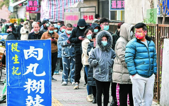 ▲1月20日,市民在西安市未央?yún)^(qū)一家小吃店前排隊(duì)購(gòu)買(mǎi)食品。自1月19日起,西安市曲江新區(qū)、未央?yún)^(qū)、經(jīng)開(kāi)區(qū)、浐灞生態(tài)區(qū)、國(guó)際港務(wù)區(qū)陸續(xù)迎來(lái)解封。新華社記者陶明攝
