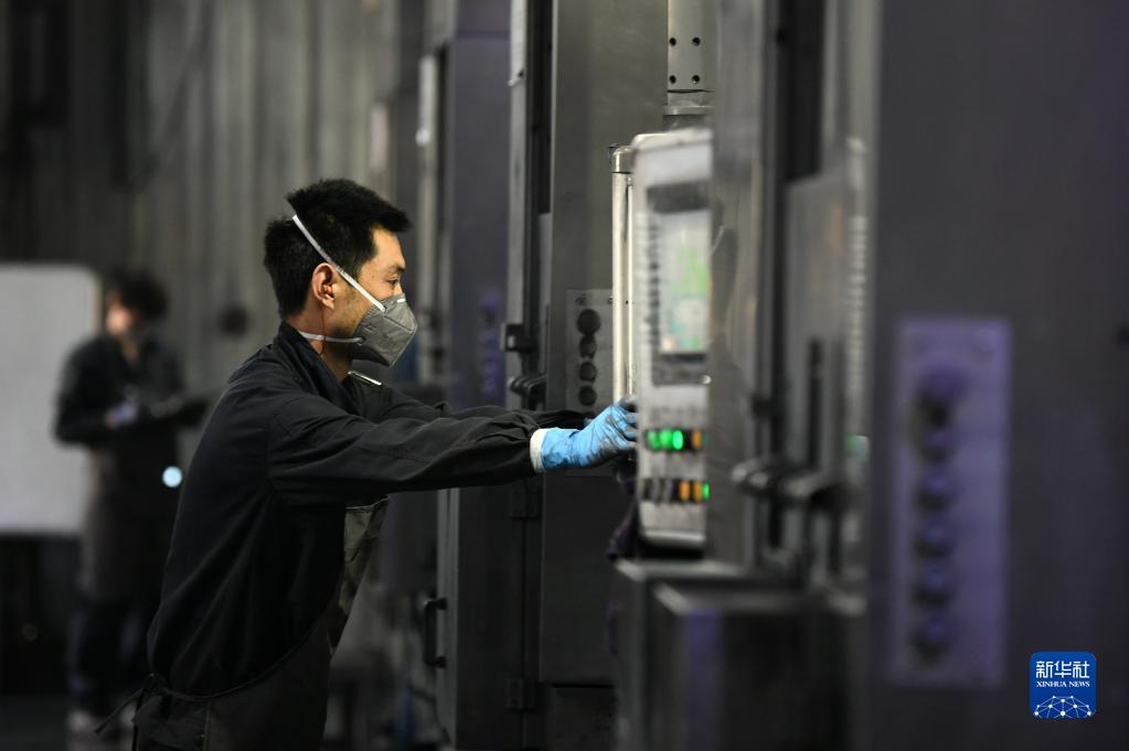 1月18日,在隆基綠能科技股份有限公司西安切片工廠,工人在生產(chǎn)線上作業(yè)。新華社記者 李一博 攝