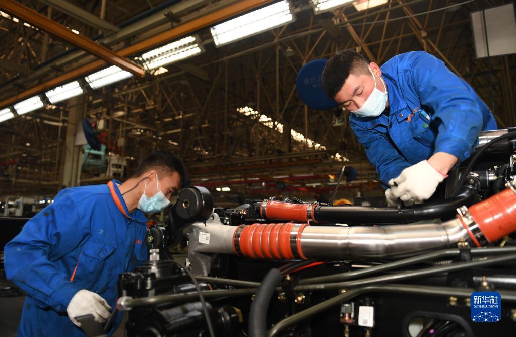 1月20日,工人在陜西汽車控股集團(tuán)有限公司總裝車間進(jìn)行重型卡車裝配。新華社記者 李一博 攝