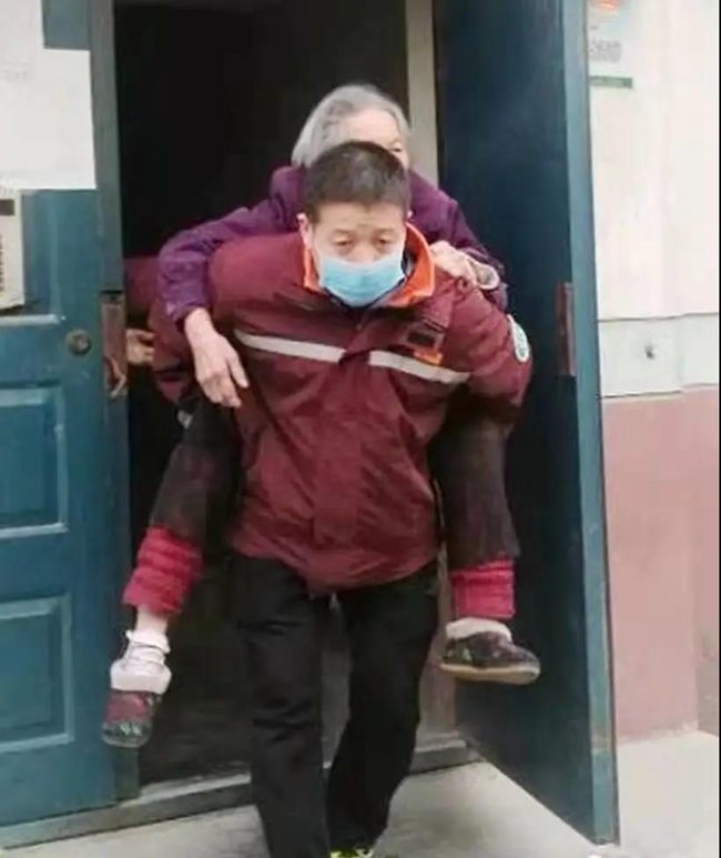 市內(nèi)某小區(qū)一名獨居老人急需就醫(yī),120急救車到達(dá)后發(fā)現(xiàn)其居住單元老舊,擔(dān)架根本無法使用,情急之下,司機(jī)楊明背起老人快速將其轉(zhuǎn)入救護(hù)車。