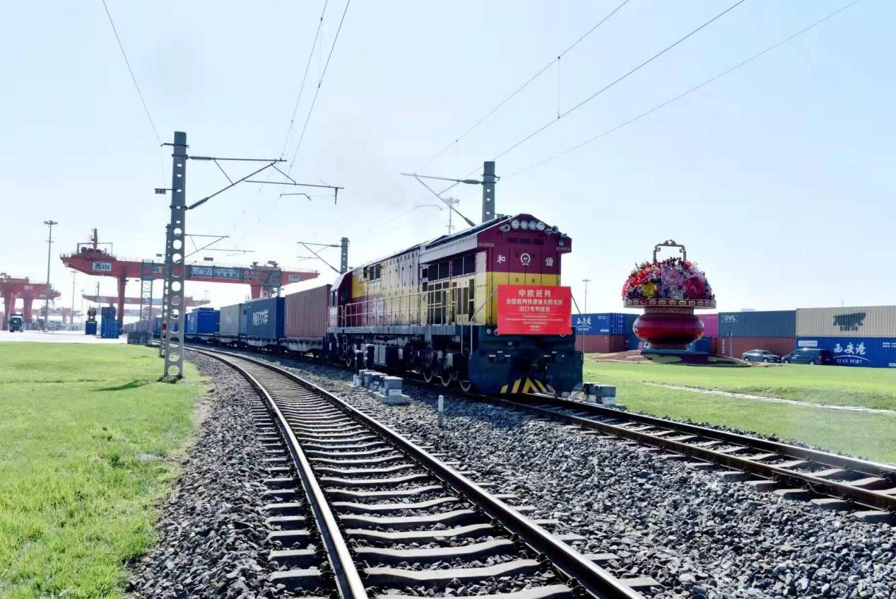 從西安國際港務(wù)區(qū)駛出的中歐班列(央廣網(wǎng)發(fā) 西安國際港務(wù)區(qū)供圖)