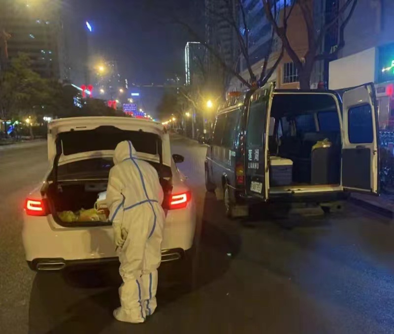 疫情之初,街道核酸檢測樣本的打包和轉運工作任務艱巨,施煜被安排參與轉運工作。經過一系列嚴格的崗前培訓后他開始上崗。收集轉運核酸樣本的過程中需要二級防護,這期間需要吃飯喝水的話就得更換一套新的防護服,為了節(jié)省下一套防護服,施煜和他的同事們都選擇在工作中不吃不喝,兩頓飯之間經常間隔十幾個小時。