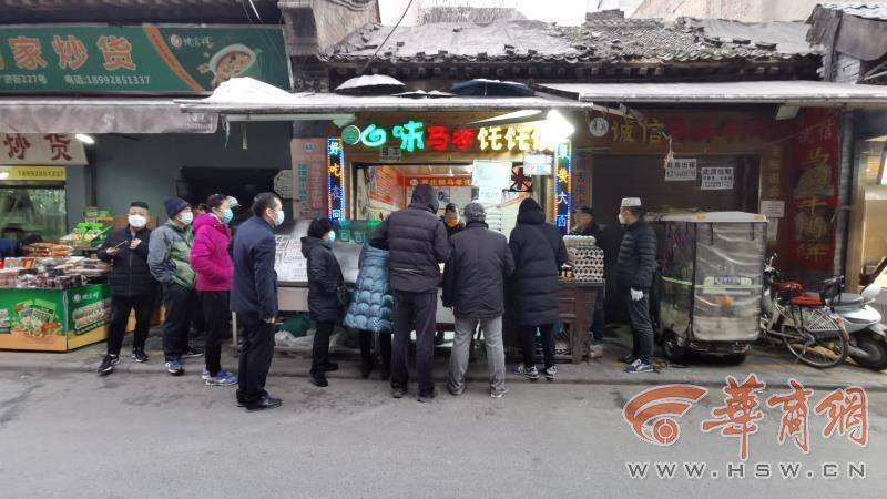 相對于回民街僅有兩三家店開門,而在周邊的大皮院、廟后街上就是另一番景象。多家餐飲店、美食攤不僅復(fù)工營業(yè)甚至門前還排起了長隊。“在家里憋了太久,就饞這一口牛肉泡饃。今天允許大家出門購物了么,就趕飯點前來這大飽口福。”在一家泡饃店門前正排隊的顧客。雖然暫時還不允許堂食,但仍不能阻擋人們對美食的向往,紛紛拎著打包好的美食帶走。