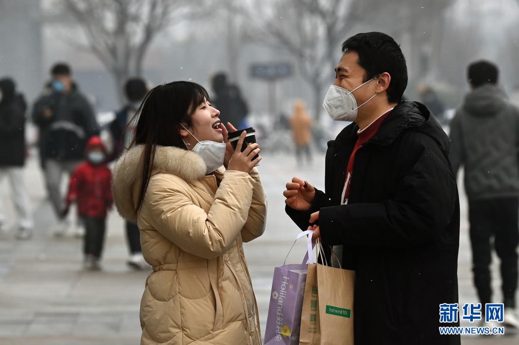 1月23日,市民在西安市未央區(qū)一廣場上暢談言歡。