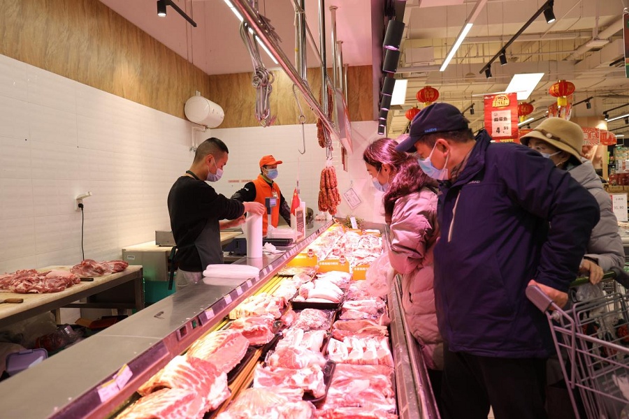 在蔬菜區(qū)、水產(chǎn)區(qū)、肉類(lèi)區(qū),工作人員稱(chēng)重、打包,忙得不亦樂(lè)乎。“今天一大早就有不少群眾來(lái),各種肉類(lèi)和火鍋食材賣(mài)得很快,還有顧客一次性買(mǎi)了800多元的肉卷。大家都說(shuō)要多買(mǎi)點(diǎn)菜,好好吃頓火鍋。我們工作人員現(xiàn)場(chǎng)切肉、殺魚(yú),也是忙得不可開(kāi)交。”該超市一汪姓負(fù)責(zé)人表示,從上午的情況看,群眾購(gòu)買(mǎi)商品的意愿都很強(qiáng),大家對(duì)各類(lèi)商品的需求都很大。