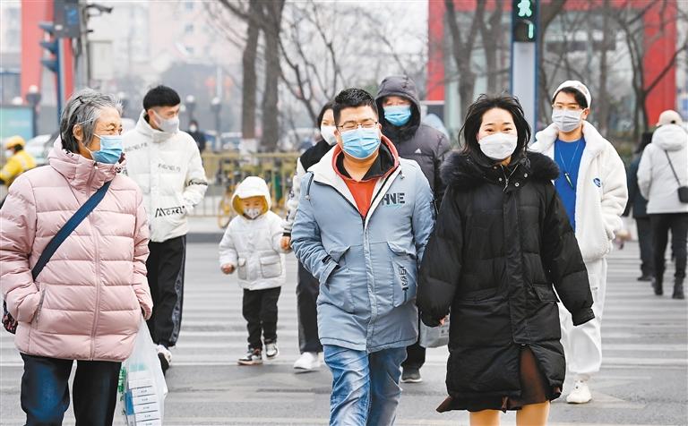 1月20日,市民行走在未央?yún)^(qū)未央路斑馬線上。(新華社記者 陶明 攝)