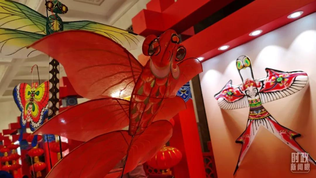 年畫、春聯(lián)、剪紙、風箏、面塑、中國結、京劇臉譜、民樂合奏……這些從中國土地上長出來的非遺作品,匠心獨運、光彩照人,讓短短數十米的廊道化身為精華版的中國“廟會”。