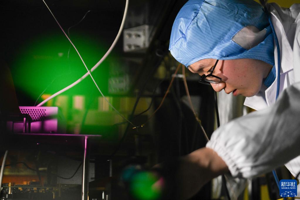 1月31日是除夕,在中國科學技術大學內(nèi),盧啟航在中國科學院量子信息重點實驗室做實驗。新華社記者 張端 攝