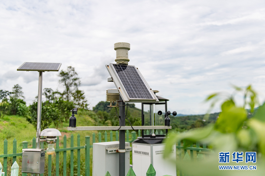 圖為青龍村數(shù)字化無人果園內(nèi)的“小氣候監(jiān)測(cè)站”。新華網(wǎng) 耿駿宇 攝