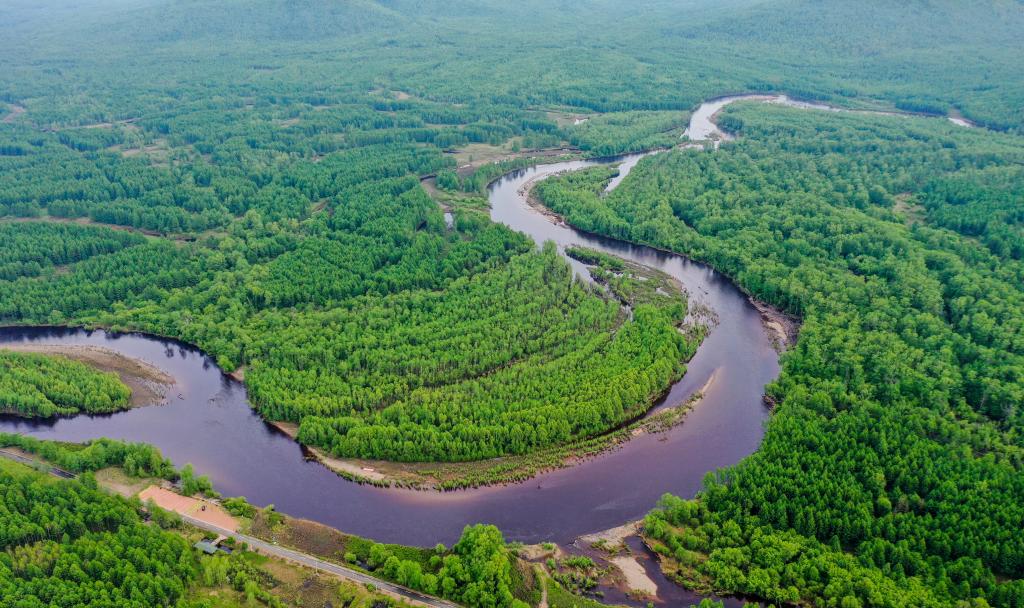這是內蒙古呼倫貝爾根河源國家濕地公園景色(無人機照片,2021年6月8日攝)。新華社記者 連振 攝