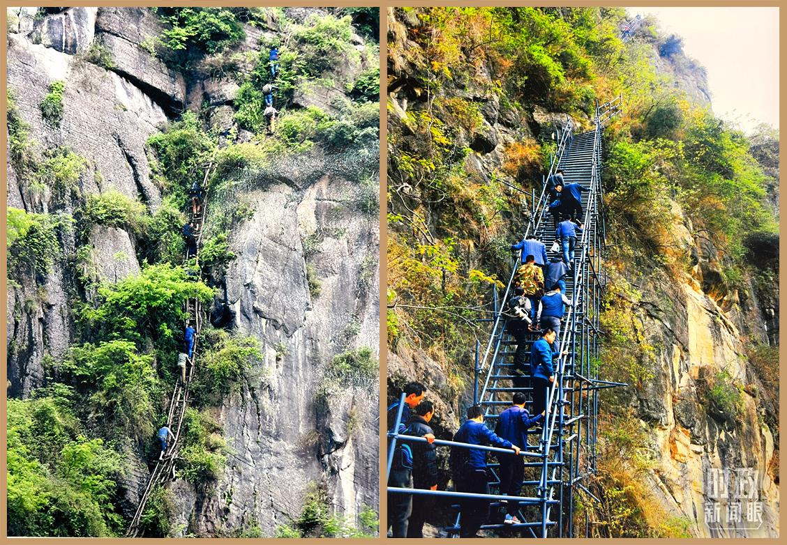 △益西達瓦委員展示的懸崖村對比圖。(總臺央視記者盧心雨、趙化拍攝)