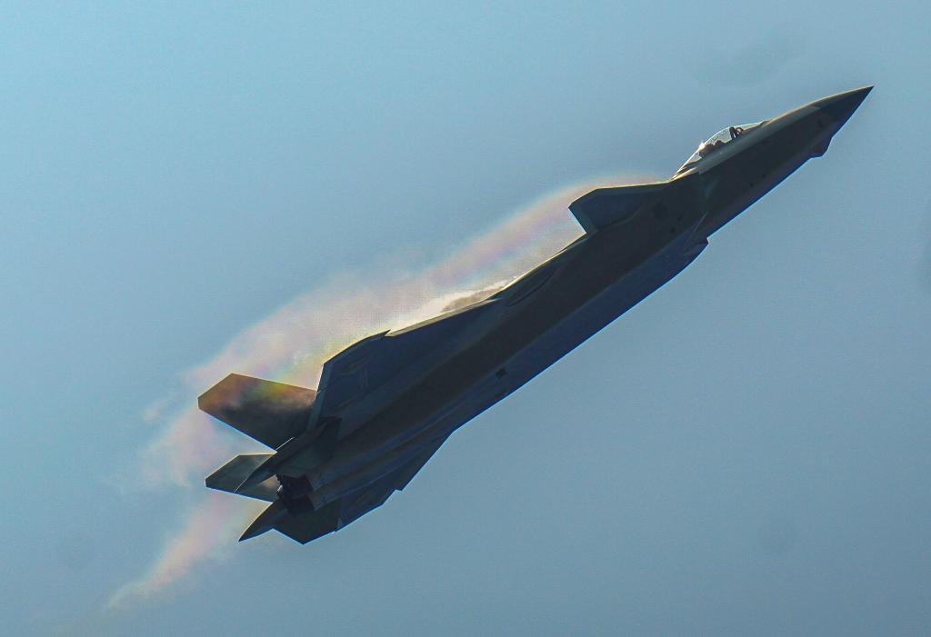 2021年9月28日,第十三屆中國(guó)國(guó)際航空航天博覽會(huì)在廣東珠海開幕,這是中國(guó)空軍殲-20戰(zhàn)機(jī)在開幕式上進(jìn)行飛行表演。新華社記者 劉大偉 攝