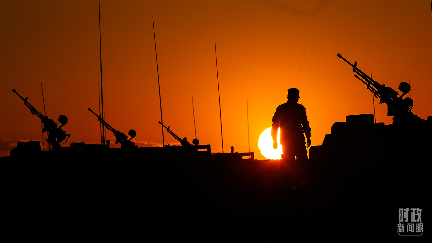 △2017年7月,士兵在晨曦中登上裝甲戰(zhàn)車,為慶祝中國人民解放軍建軍90周年朱日和大閱兵做最后的準(zhǔn)備。(總臺(tái)國廣記者李晉拍攝)
