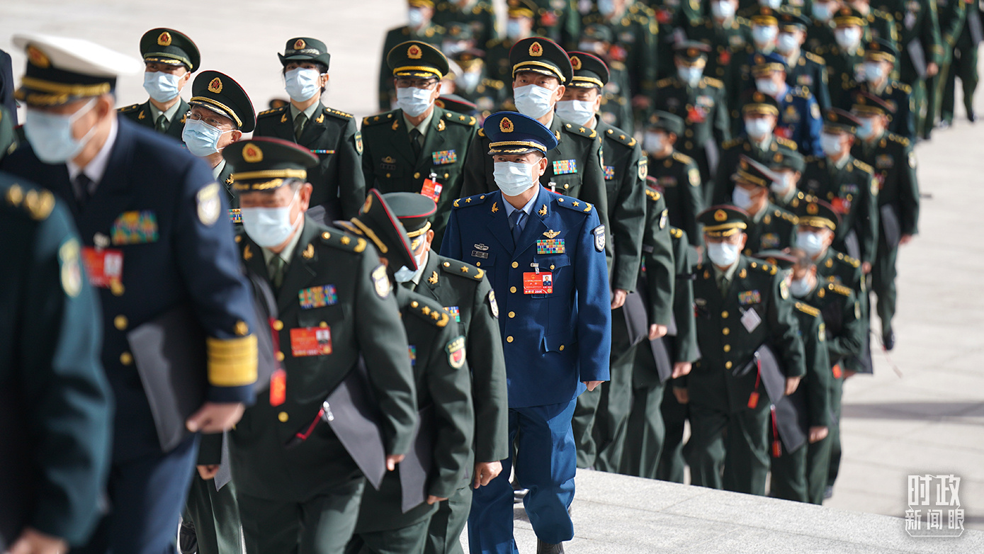 △2022年3月4日,解放軍代表步入人民大會(huì)堂。(總臺(tái)國廣記者 李晉拍攝)