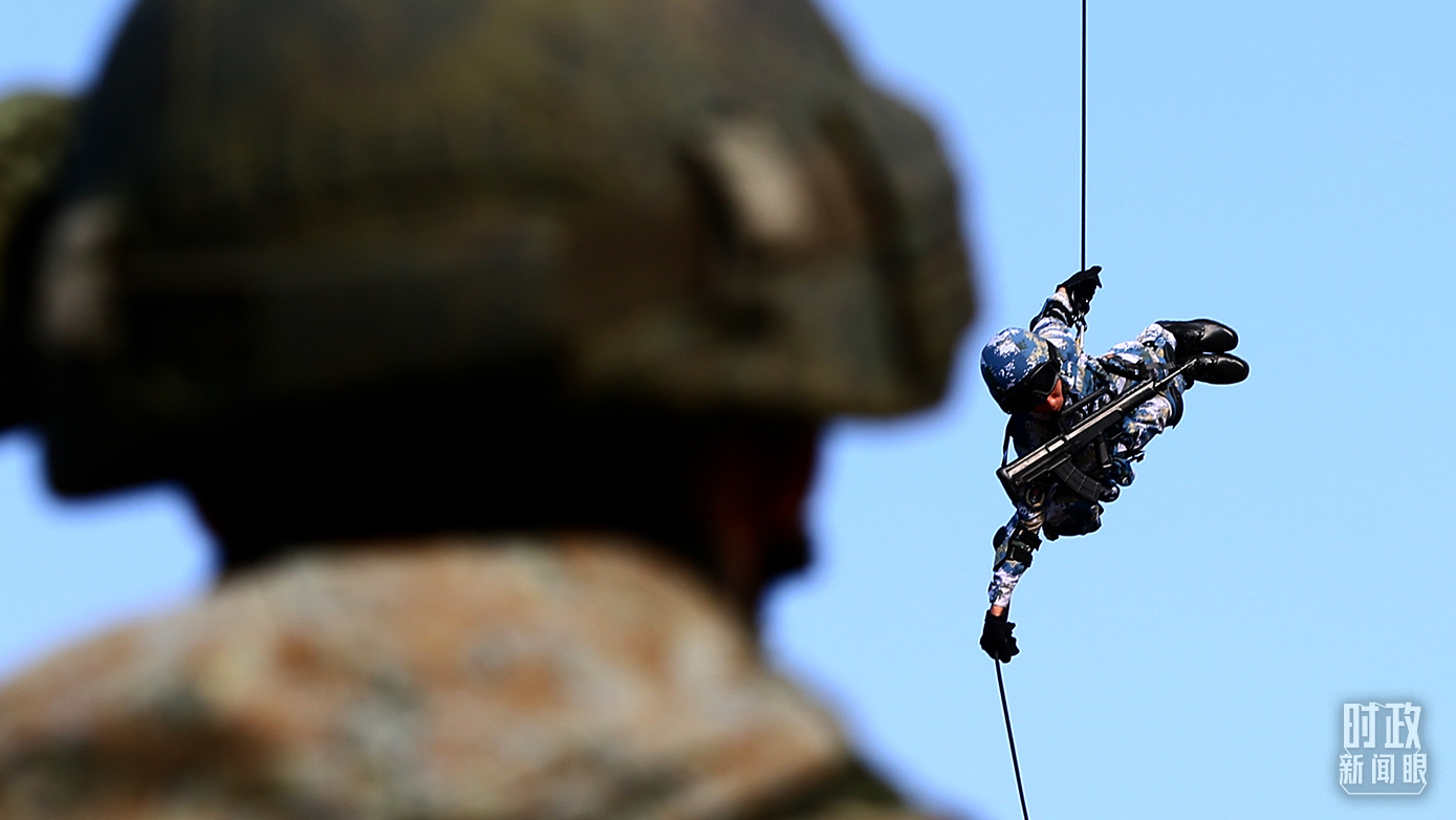 △2016年,廣東湛江某訓(xùn)練場,中國陸戰(zhàn)隊(duì)員實(shí)施高空滑降。(總臺(tái)國廣記者李晉拍攝)
