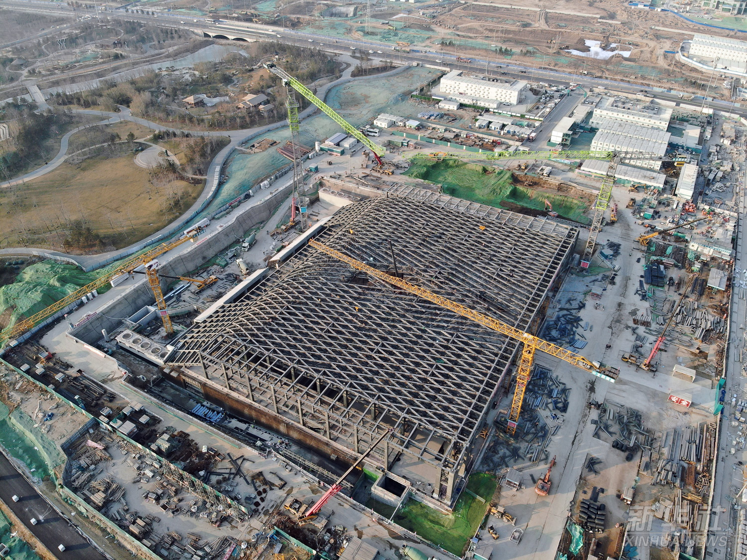 這是建設(shè)中的雄安新區(qū)城市計(jì)算(超算云)中心項(xiàng)目(無人機(jī)照片,2022年1月5日攝)。該項(xiàng)目是雄安數(shù)字孿生城市“之腦”“之眼”“之芯”,將為整個(gè)數(shù)字孿生城市的大數(shù)據(jù)、區(qū)塊鏈、物聯(lián)網(wǎng)、AI、VR/AR提供網(wǎng)絡(luò)、計(jì)算、存儲服務(wù)。