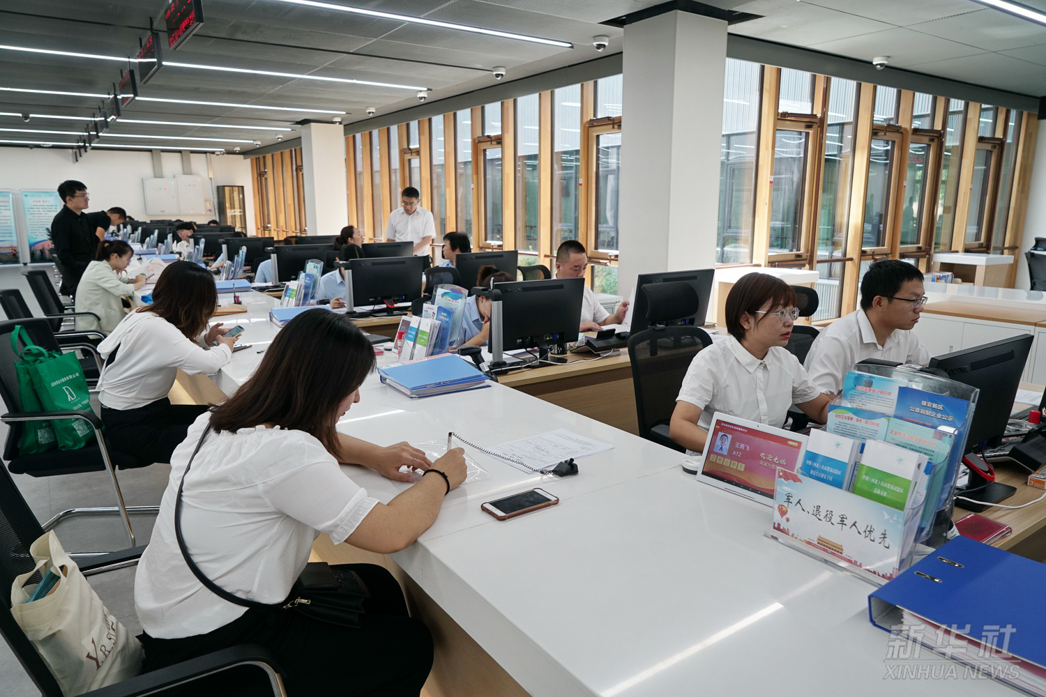 企業(yè)工作人員在中國(河北)自由貿(mào)易試驗(yàn)區(qū)雄安片區(qū)政務(wù)服務(wù)中心辦理業(yè)務(wù)(2019年8月30日攝)。2019年8月,中國(河北)自由貿(mào)易試驗(yàn)區(qū)在雄安新區(qū)正式揭牌。試驗(yàn)區(qū)實(shí)施范圍119.97平方公里,涵蓋雄安片區(qū)、正定片區(qū)、曹妃甸片區(qū)、大興機(jī)場片區(qū)四個(gè)片區(qū)。