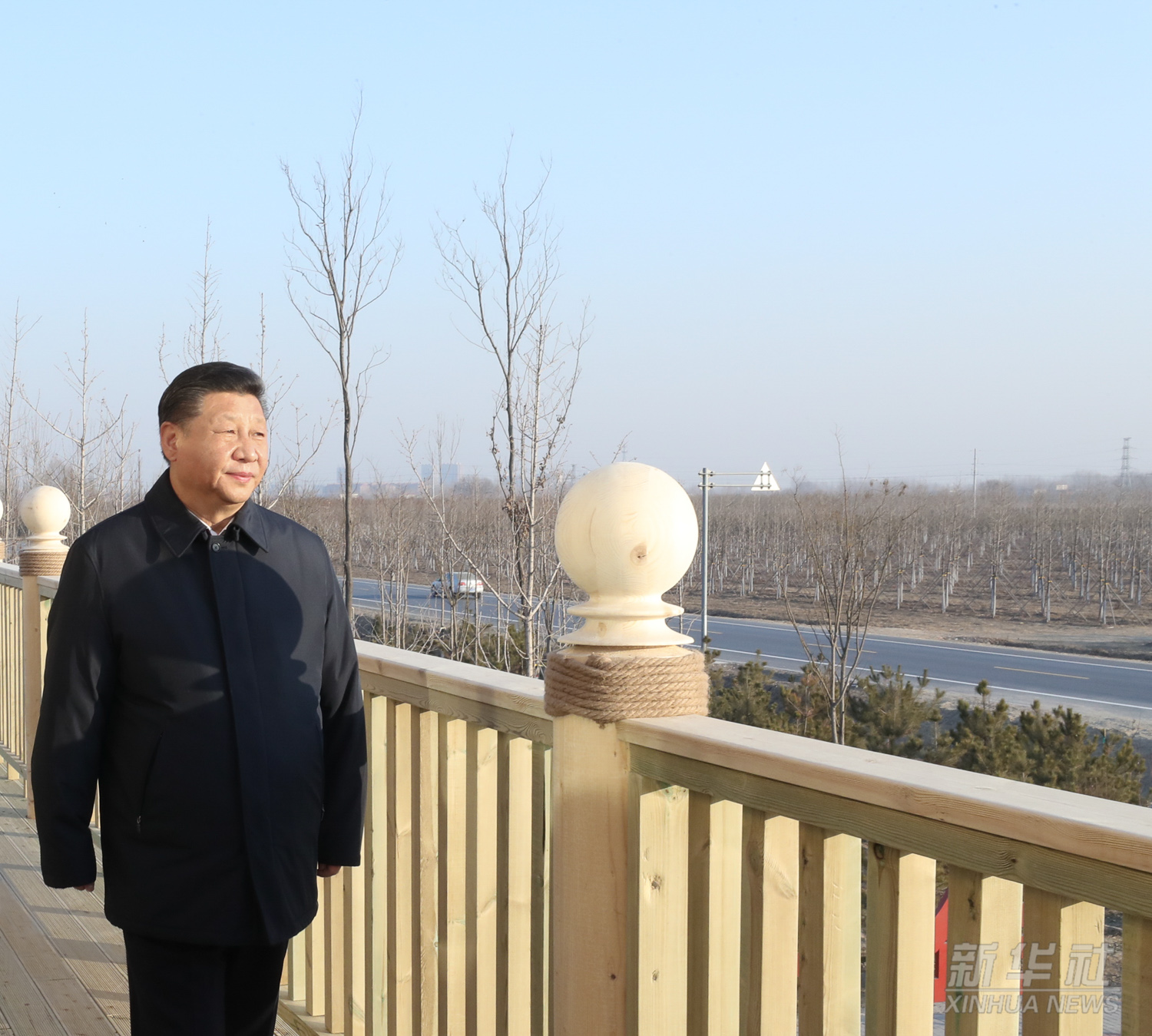 2019年1月16日至18日,習(xí)近平在京津冀考察,主持召開京津冀協(xié)同發(fā)展座談會(huì)并發(fā)表重要講話。這是1月16日下午,在雄安新區(qū)“千年秀林”大清河片林一區(qū)造林區(qū)域,習(xí)近平登上秀林驛站二層平臺遠(yuǎn)眺林區(qū)全貌。