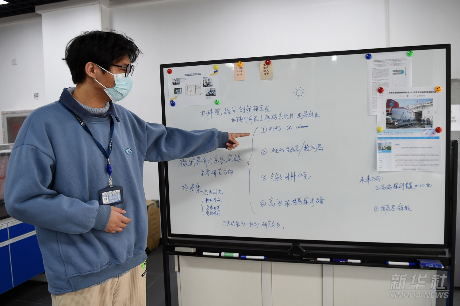 中科院雄安創(chuàng)新研究院工作人員介紹微納器件與系統(tǒng)實(shí)驗(yàn)室主要研究方向(2022年3月8日攝)。2019年12月,中國科學(xué)院與河北省政府簽署協(xié)議,合作共建“雄安創(chuàng)新研究院”,重點(diǎn)突破產(chǎn)業(yè)基礎(chǔ)性關(guān)鍵技術(shù)、新興產(chǎn)業(yè)核心技術(shù)和開辟新領(lǐng)域的變革性技術(shù),推動(dòng)研究成果轉(zhuǎn)移轉(zhuǎn)化。