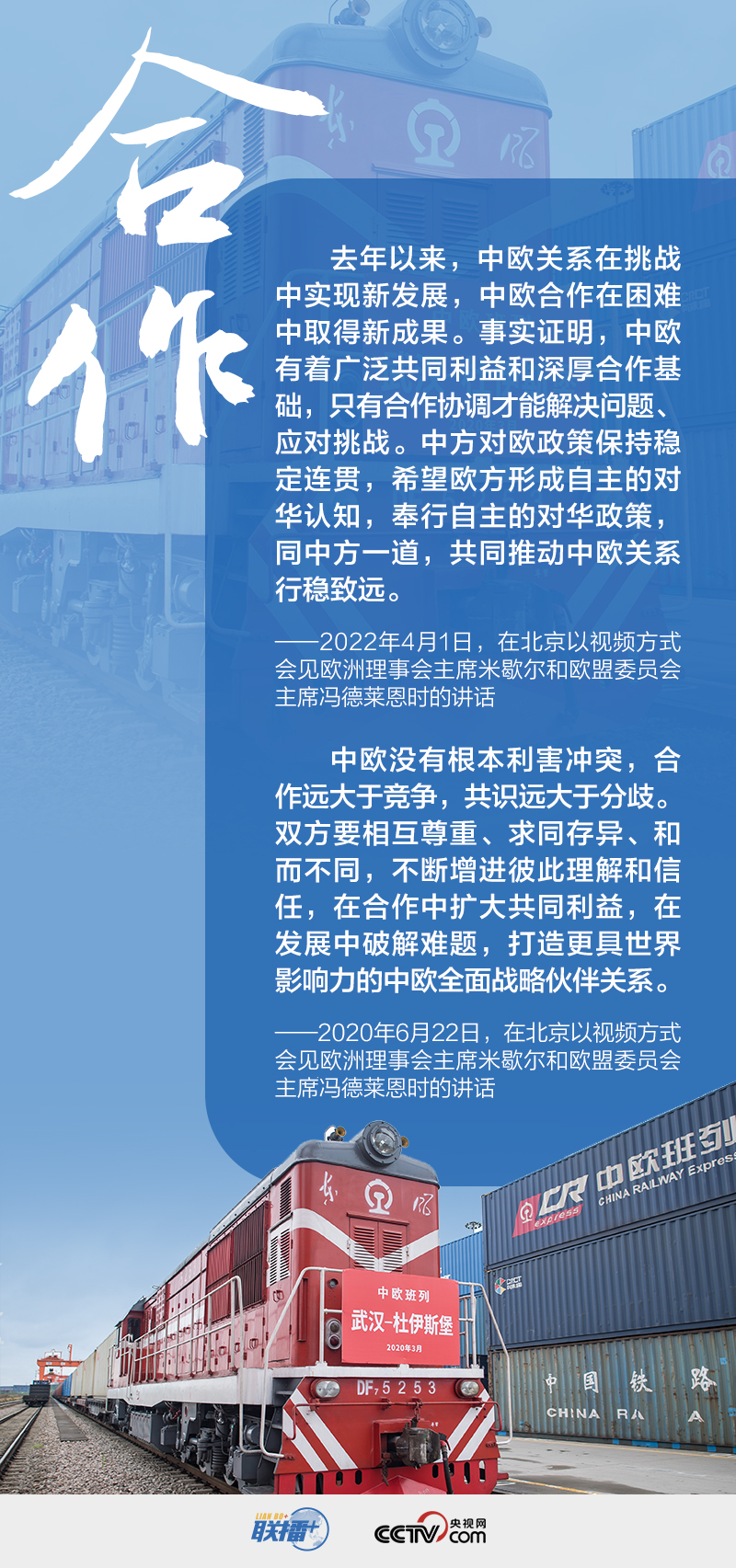 2020年6月22日的高峰會(huì)晤中,習(xí)主席展望中歐關(guān)系再升級(jí):“打造更具世界影響力的中歐全面戰(zhàn)略伙伴關(guān)系。”