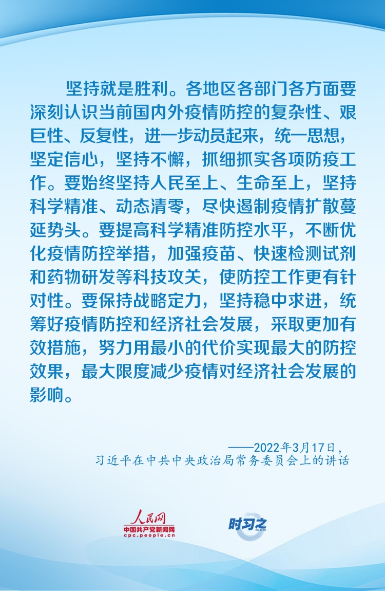 “要始終堅(jiān)持人民至上、生命至上,堅(jiān)持科學(xué)精準(zhǔn)、動態(tài)清零,盡快遏制疫情擴(kuò)散蔓延勢頭”。面對新冠肺炎疫情的跌宕反復(fù),習(xí)近平總書記親自指揮、親自部署,以科學(xué)之策應(yīng)對非常之難。今年以來,如何打好疫情防控和經(jīng)濟(jì)社會發(fā)展之戰(zhàn),習(xí)近平作出重要部署。