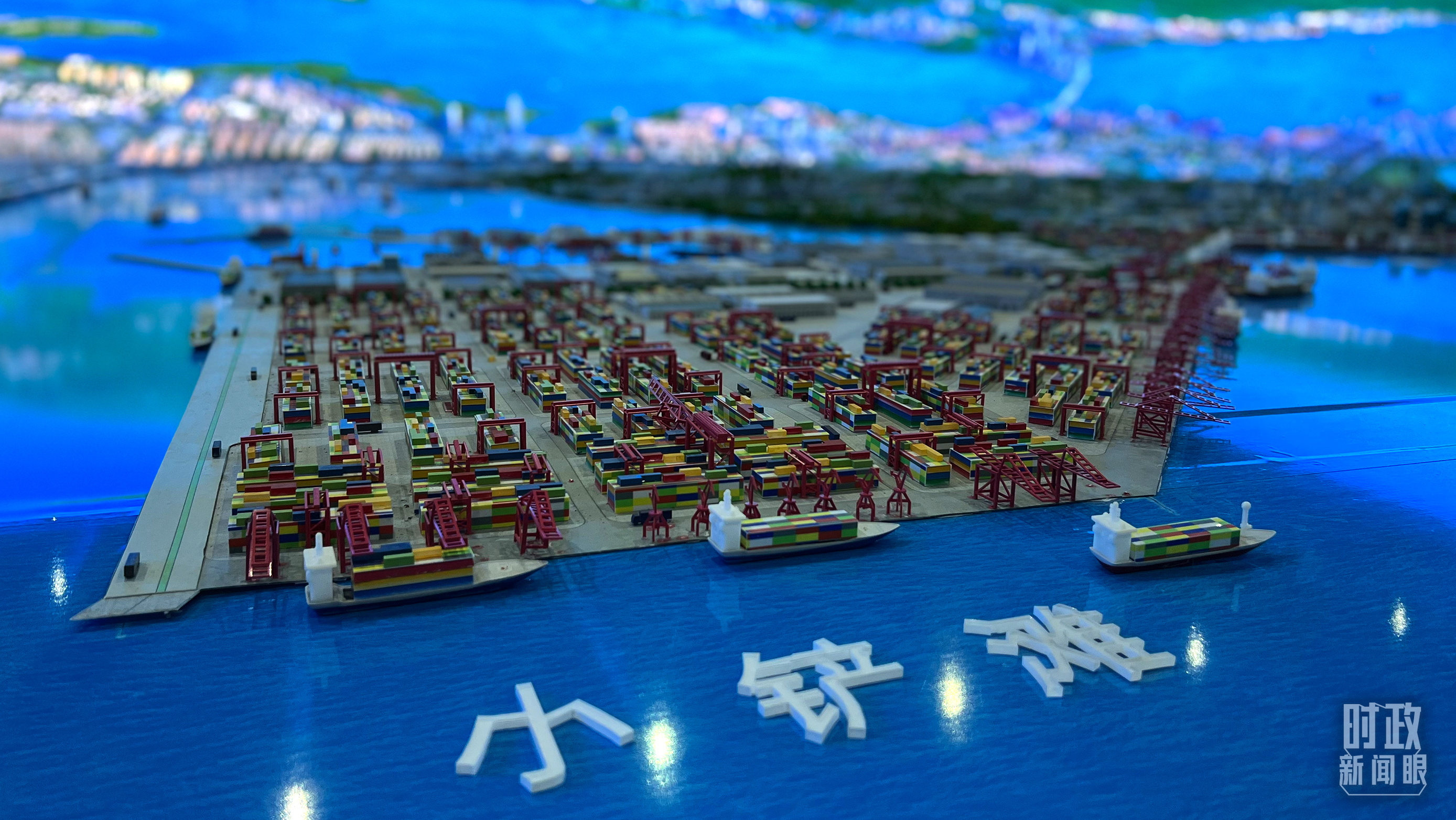 △洋浦展示館,小鏟灘港區(qū)模型。(總臺(tái)央視記者邢彬拍攝)