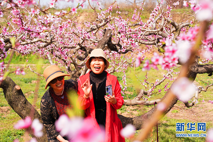 游客在臨潼零塬村桃花林賞桃花。新華網發(fā) 王三合 攝