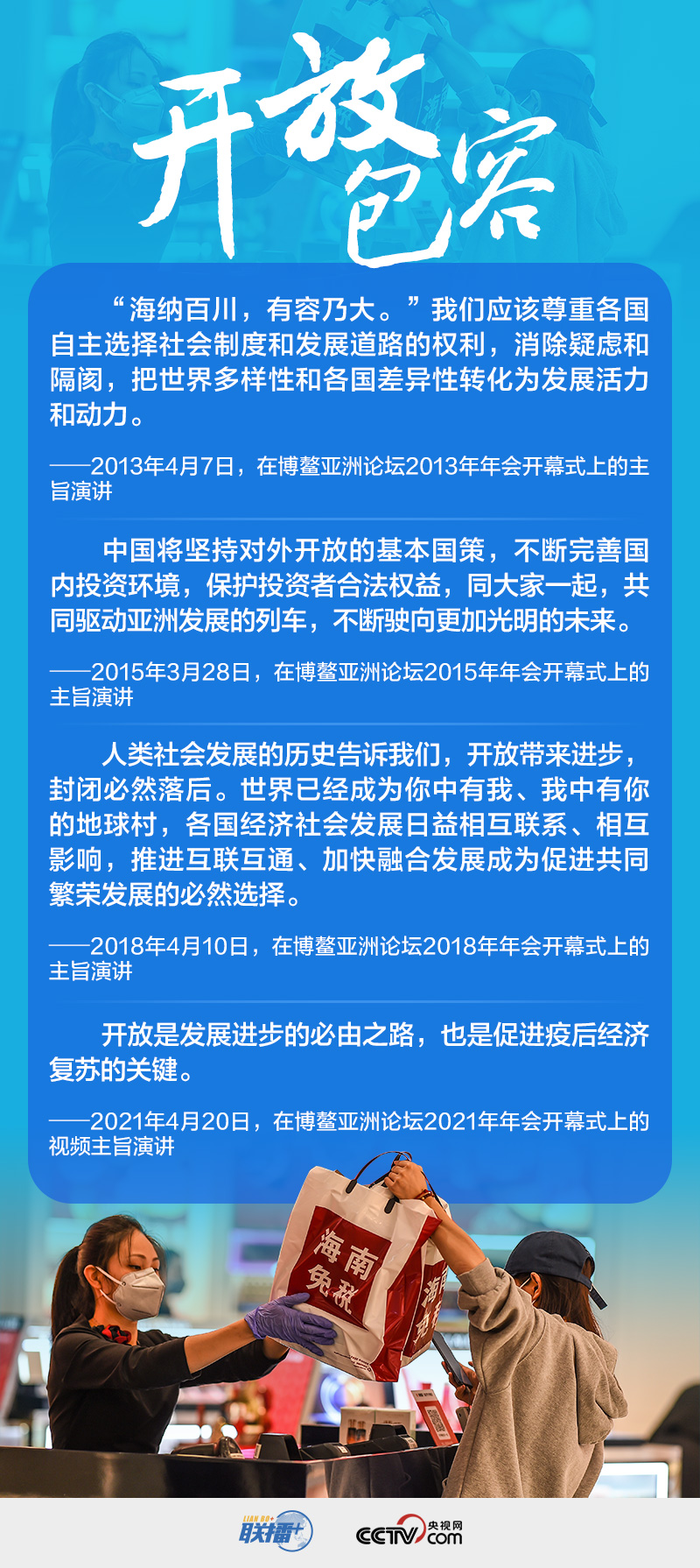 “和平發(fā)展”“開(kāi)放包容”“合作共贏”“人類命運(yùn)共同體”……習(xí)近平主席為亞洲發(fā)展貢獻(xiàn)“中國(guó)方案”,給世界發(fā)展注入“中國(guó)信心”。央視網(wǎng)《聯(lián)播+》邀您一起溫故知新。