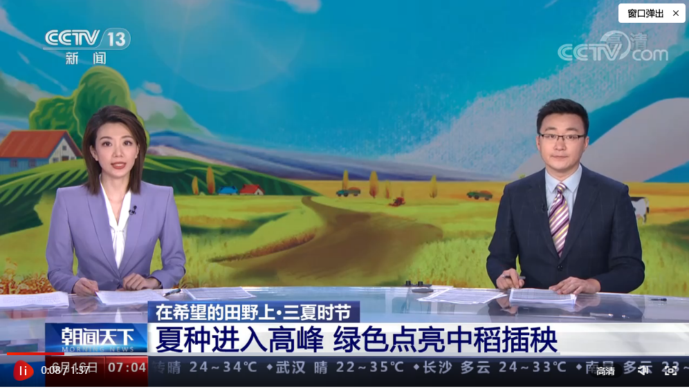 農(nóng)業(yè)農(nóng)村部最新農(nóng)情調(diào)度顯示,全國(guó)夏播糧食作物已播57.2%。其中,中稻栽插六成半,夏玉米播種五成半,夏大豆播種過(guò)四成。