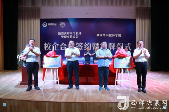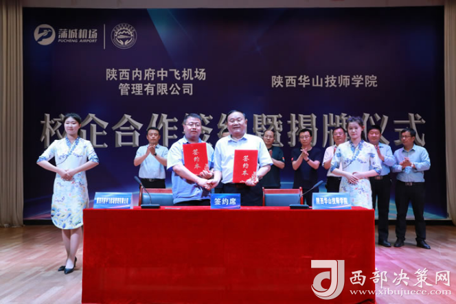 祝賀陜西內(nèi)府中飛機場管理有限公司總經(jīng)理魏鑫科與華山國際教育集團董事長任永敏簽約。