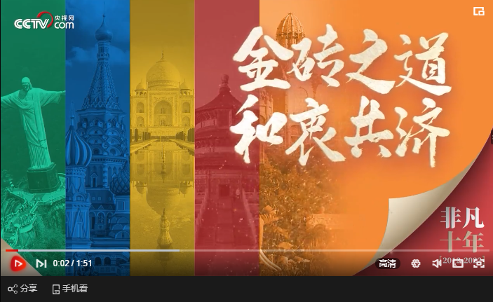 央視網(wǎng)消息:作為新興市場國家和發(fā)展中國家間的重要合作機(jī)制和平臺,金磚國家已成為國際舞臺上不可或缺的建設(shè)性力量。作為2022年金磚國家主席國,中國將如何推動“金磚巨輪”破浪前行,引領(lǐng)“金磚+”走深走實,央視網(wǎng)系列創(chuàng)意微視頻《非凡十年》,帶您看“金磚成色”,讀懂“金磚智慧”。