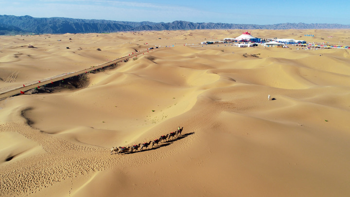 這是在寧夏中衛(wèi)市拍攝的騰格里沙漠(無(wú)人機(jī)照片,2018年9月7日攝)。 新華社記者 王鵬 攝