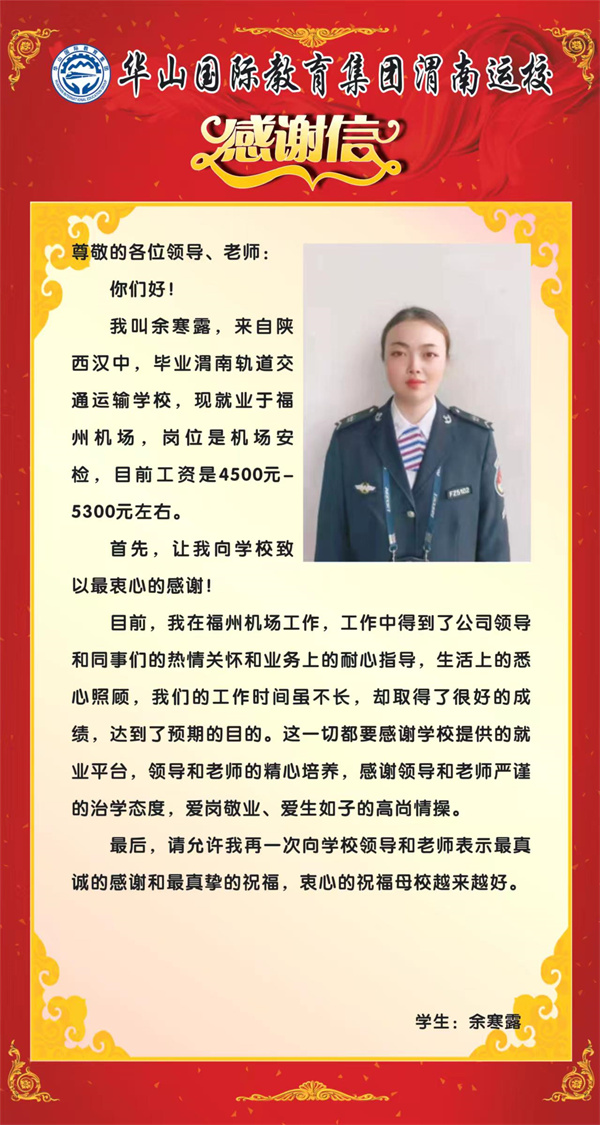 安置到福州機(jī)場的我校優(yōu)秀畢業(yè)生余寒露